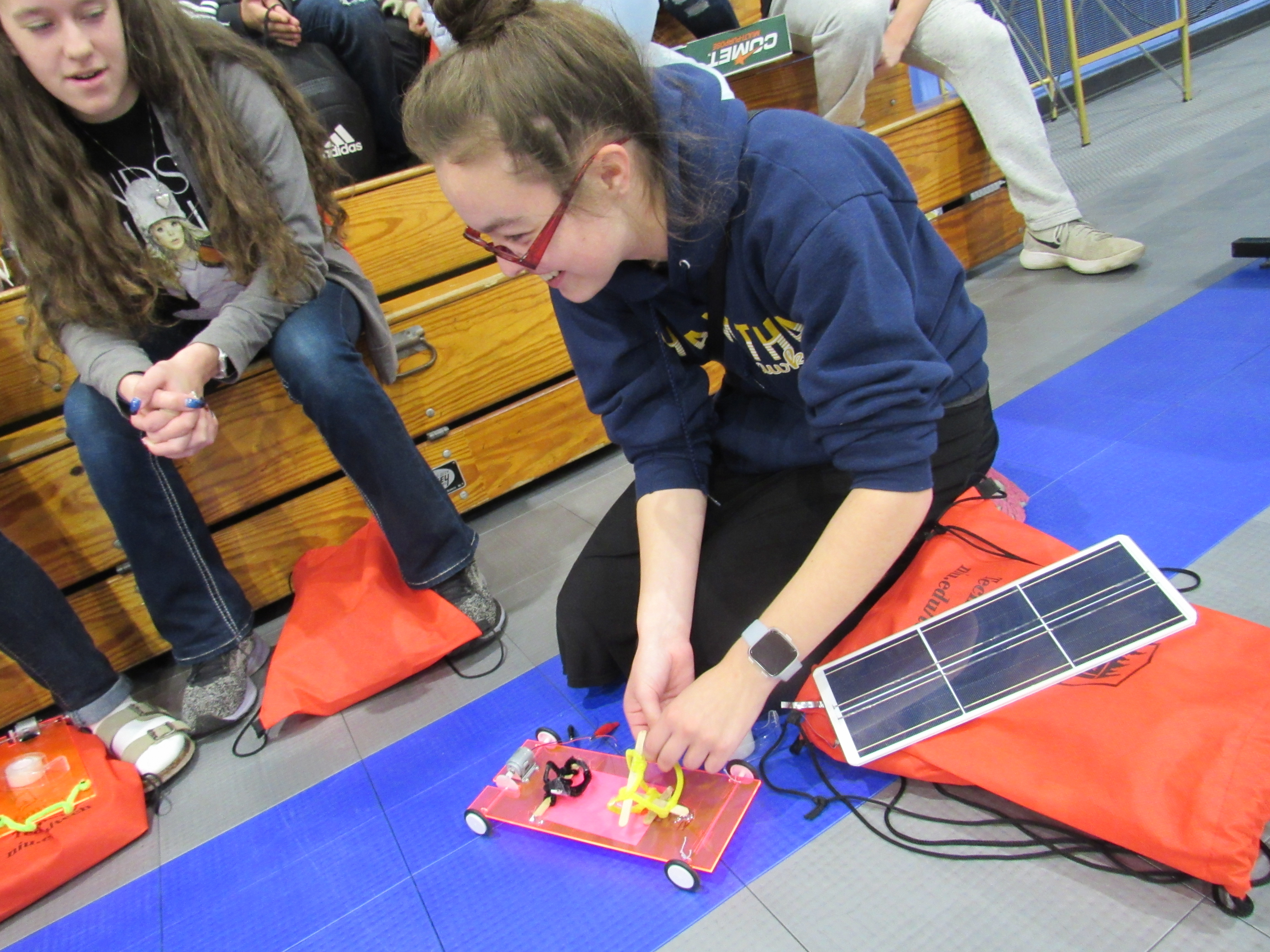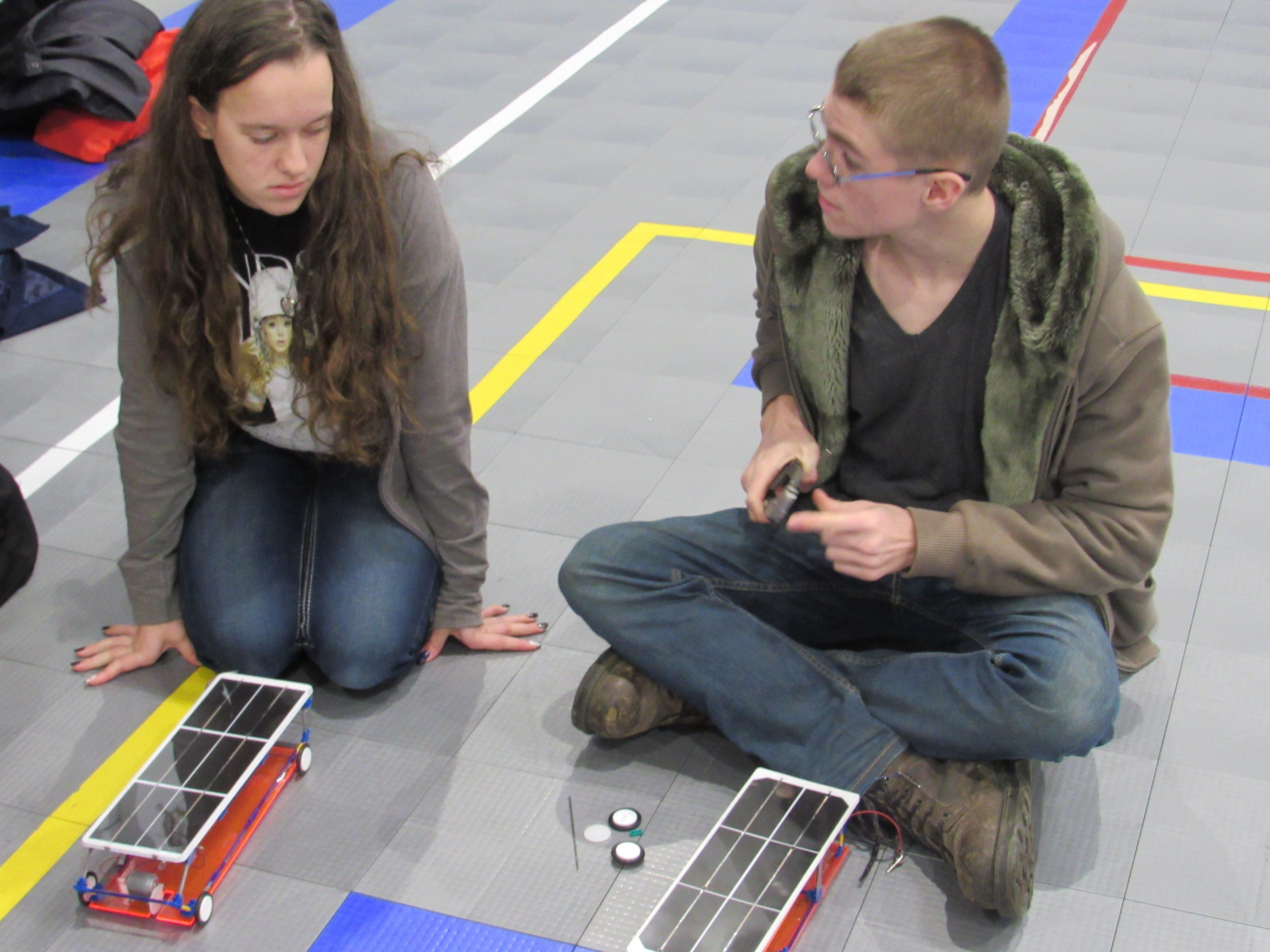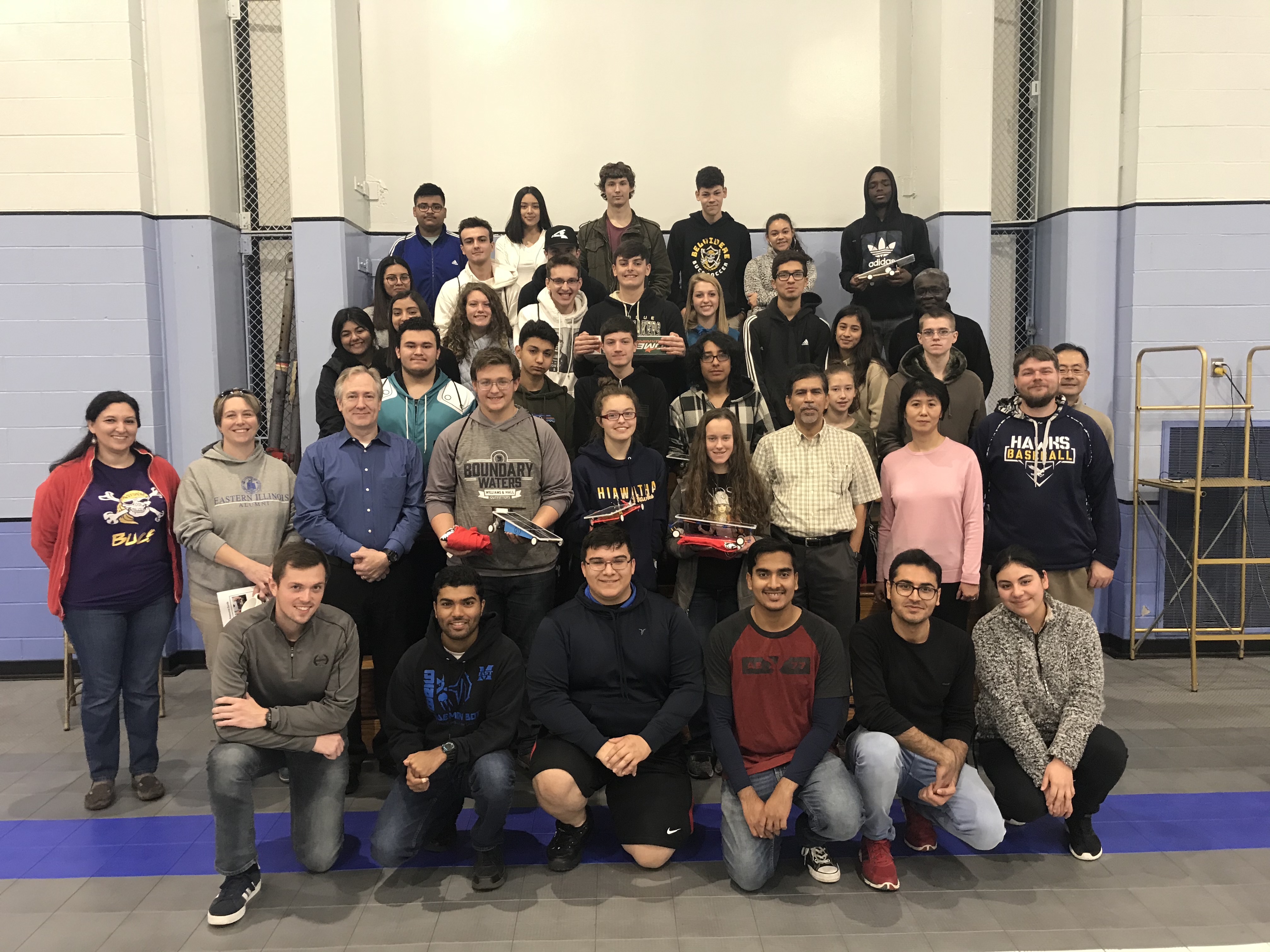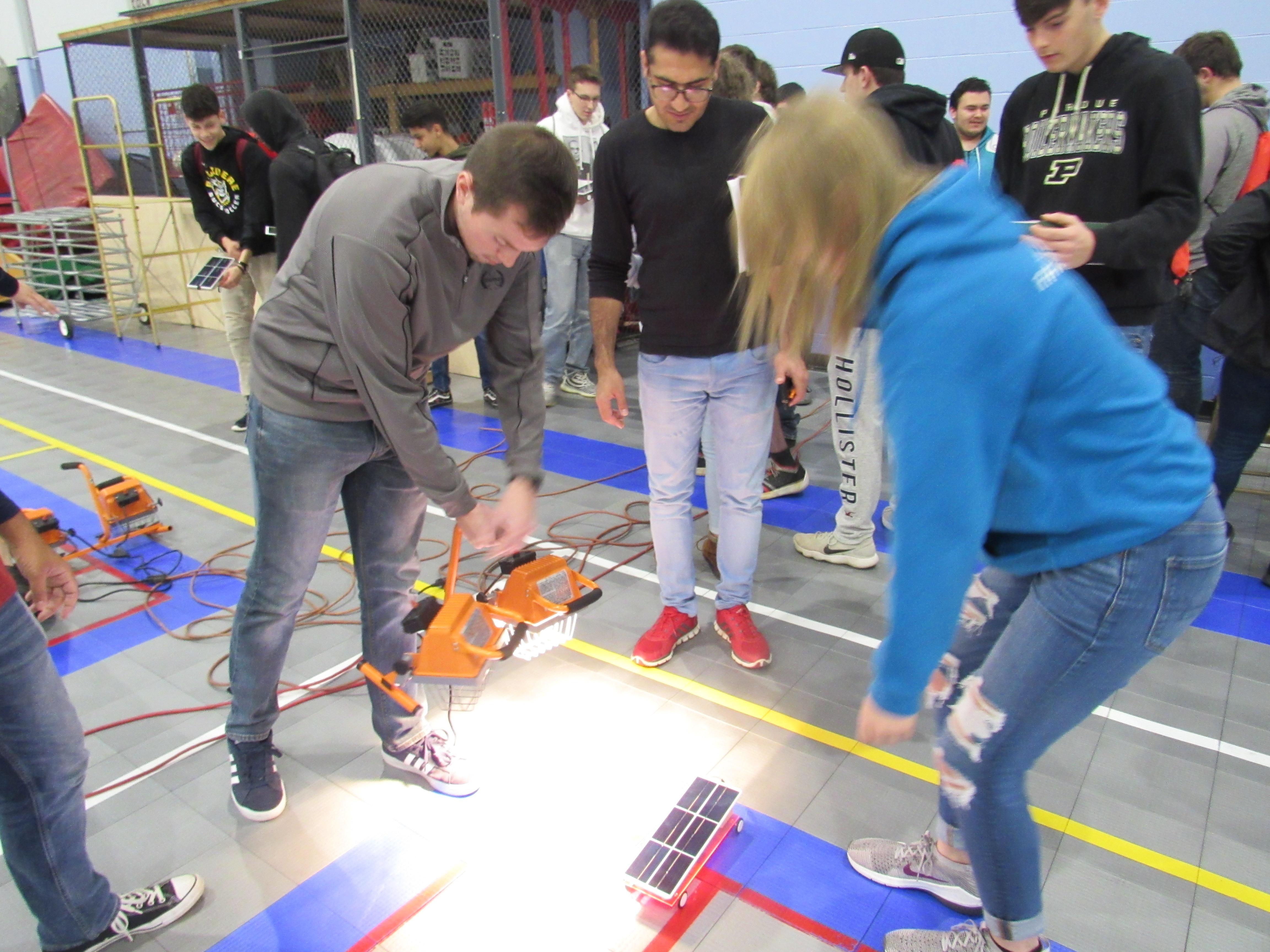 Students from Belvidere High School in Belvidere, Ill. and Hiawatha High School in Kirkland, Ill., participated in a solar-powered car competition at Anderson Hall on the NIU campus as part of an interactive program to promote interest in science, technology, engineering, and math careers.