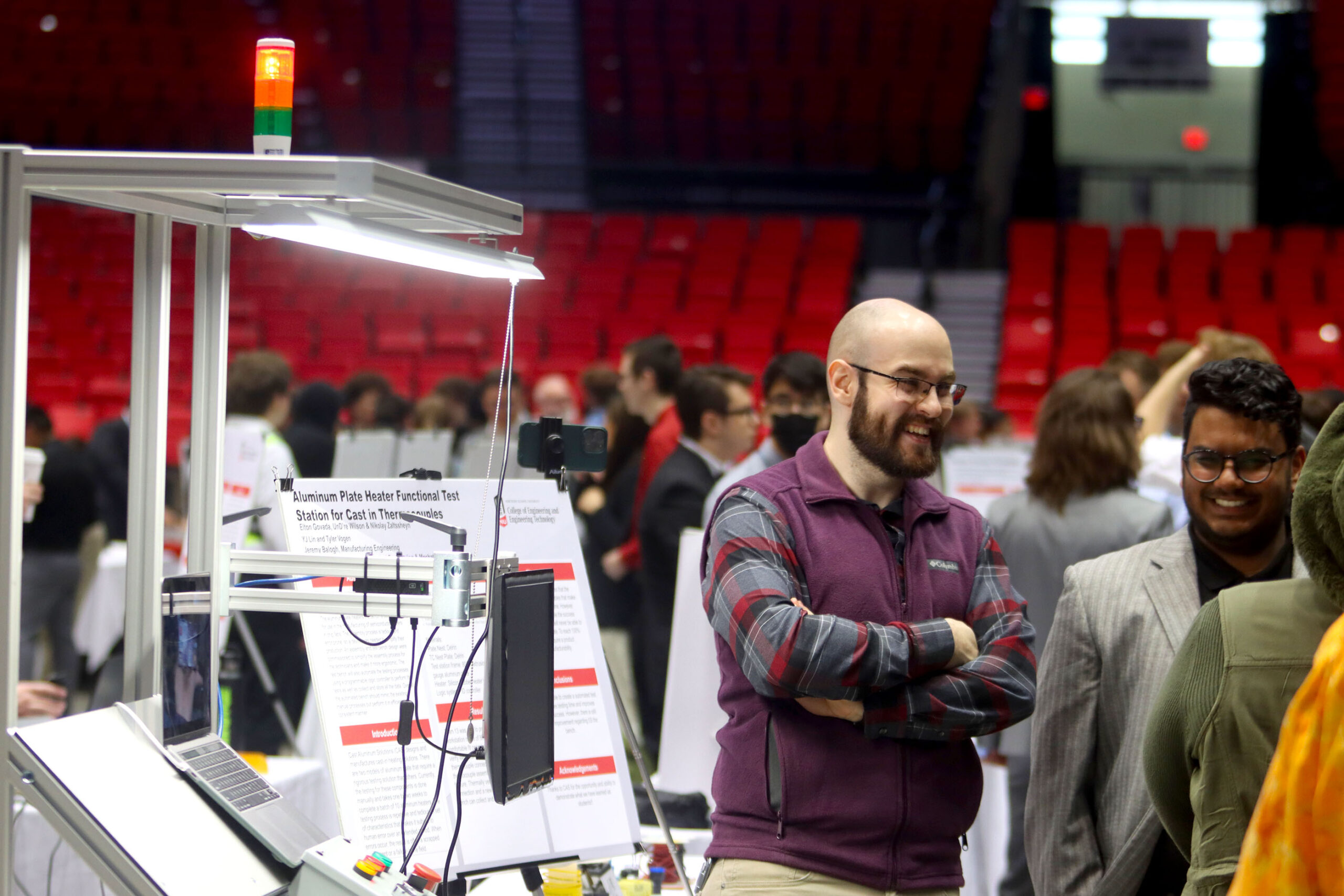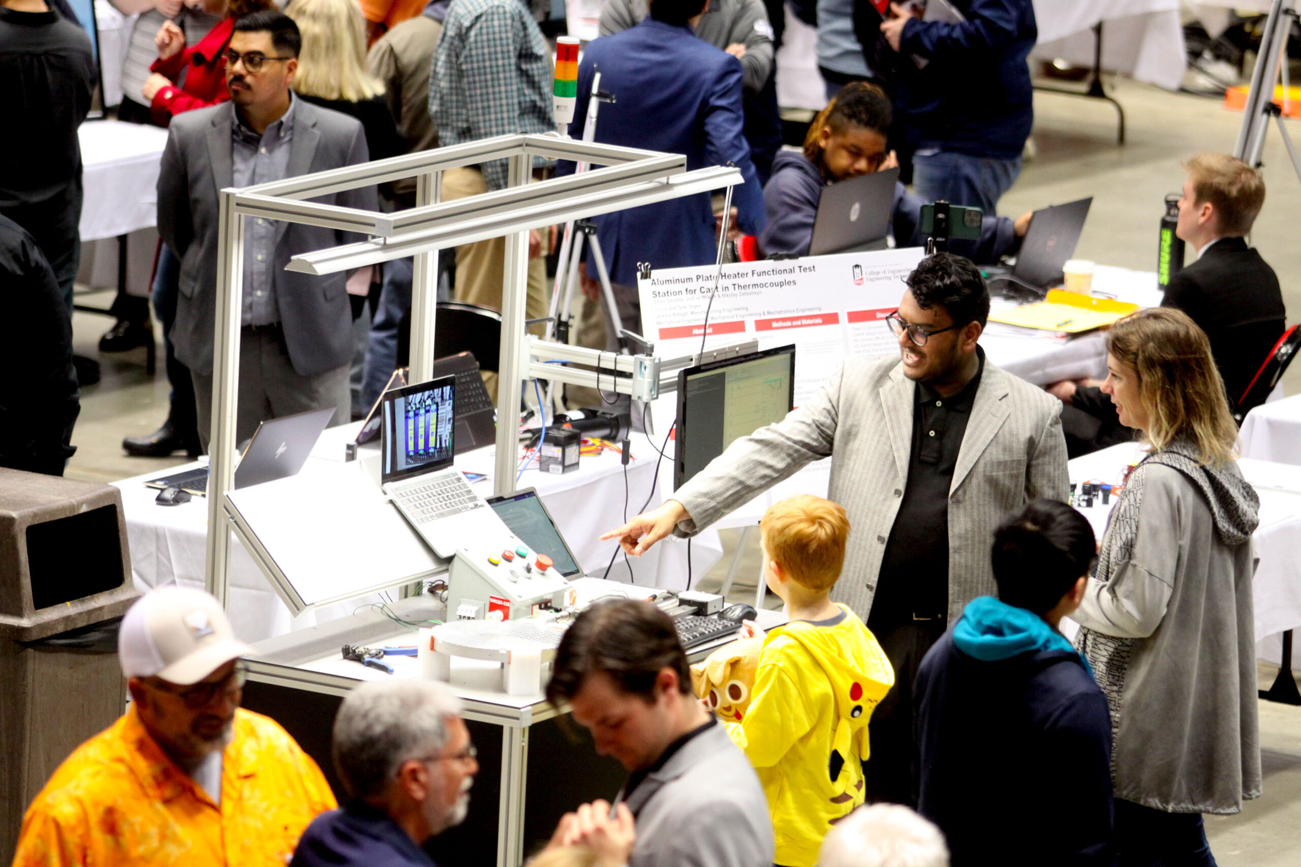 More than 1,300 visitors were present to see the showcase of the Senior Design program, which is a course for senior-level engineering and engineering technology students. The students form teams and embark on a capstone project that applies what they’ve learned throughout their education at NIU. The program provides a real-world learning experience that provides them with the chance to see how engineers operate in the workplace.
