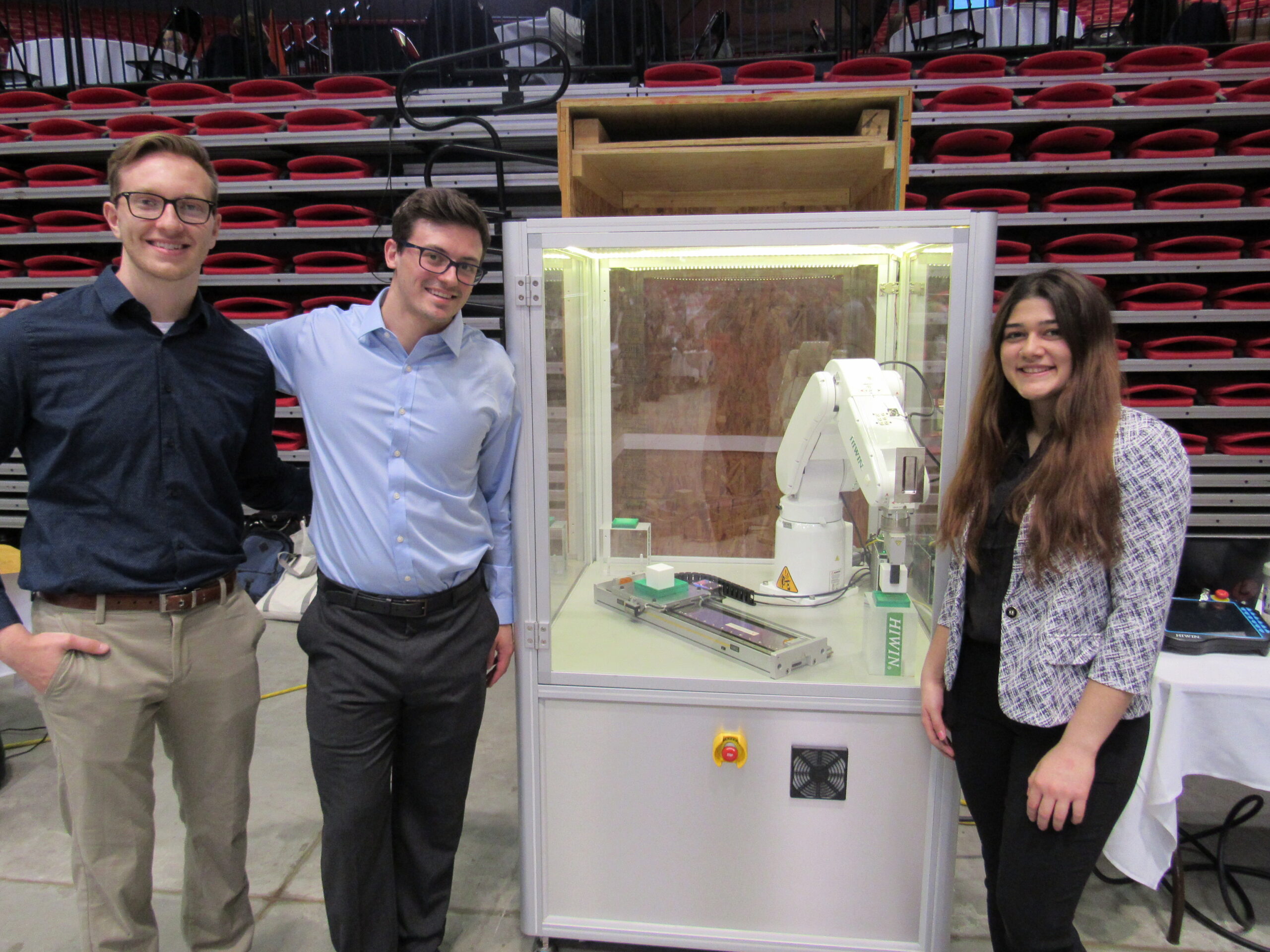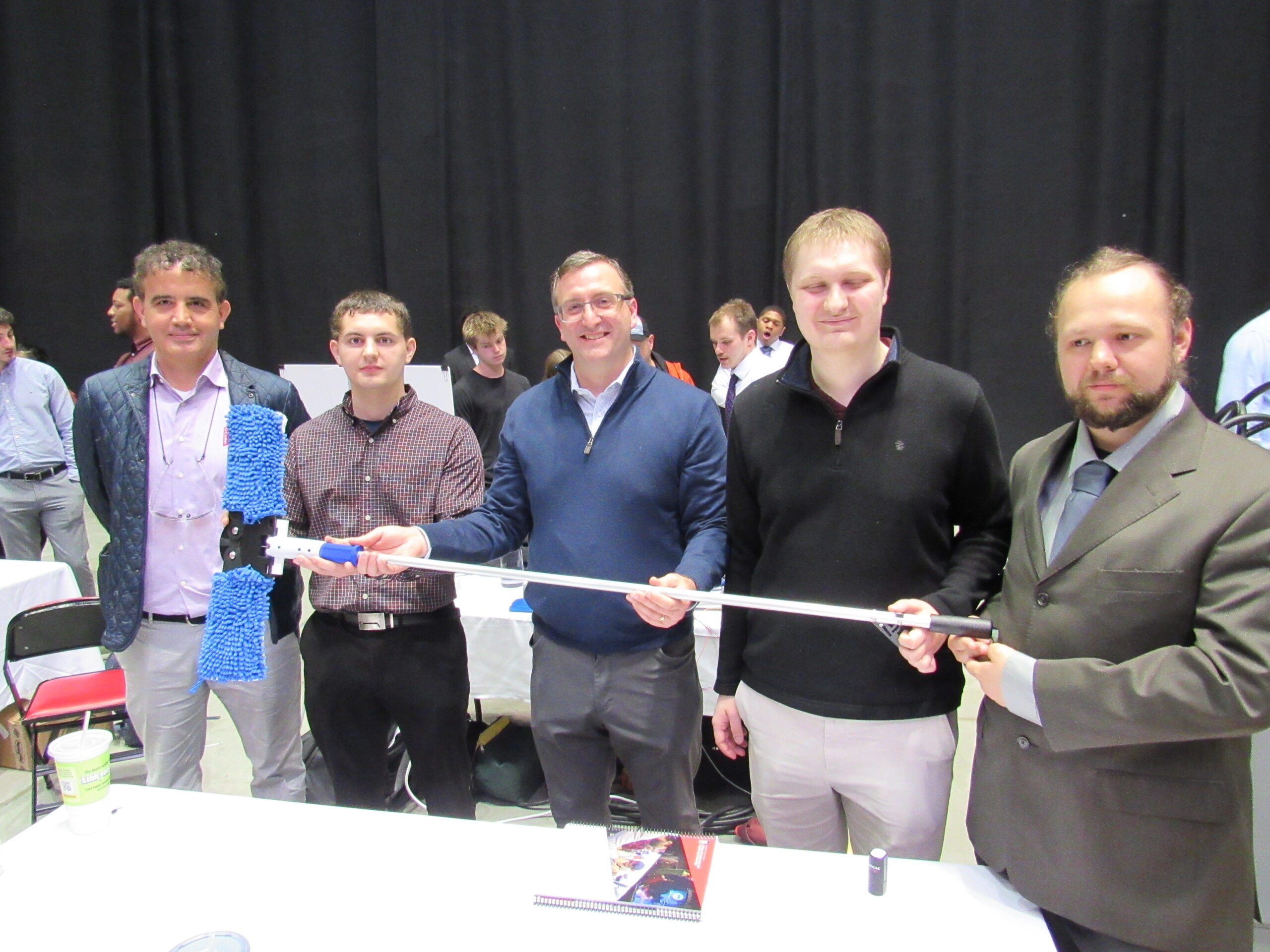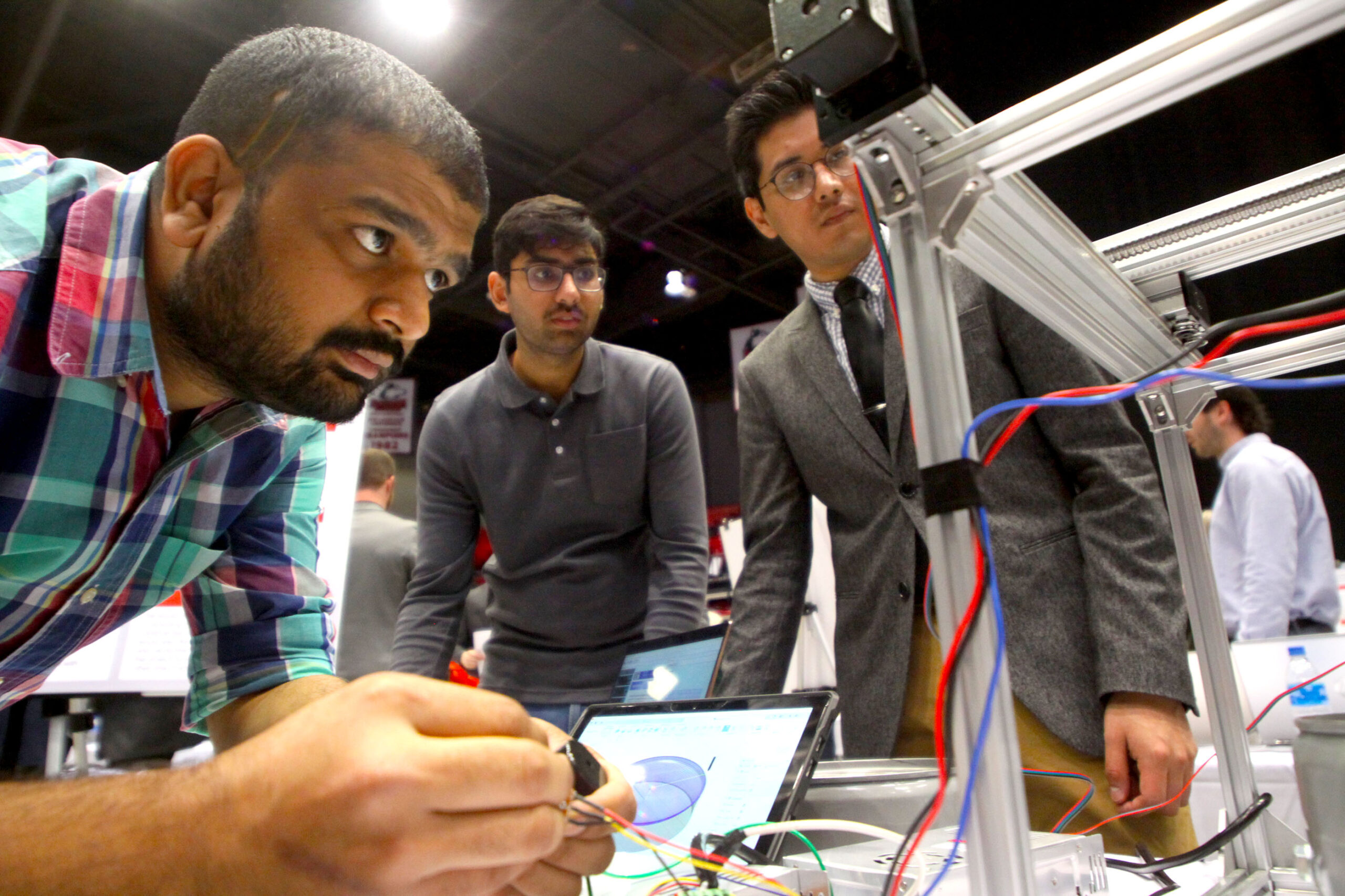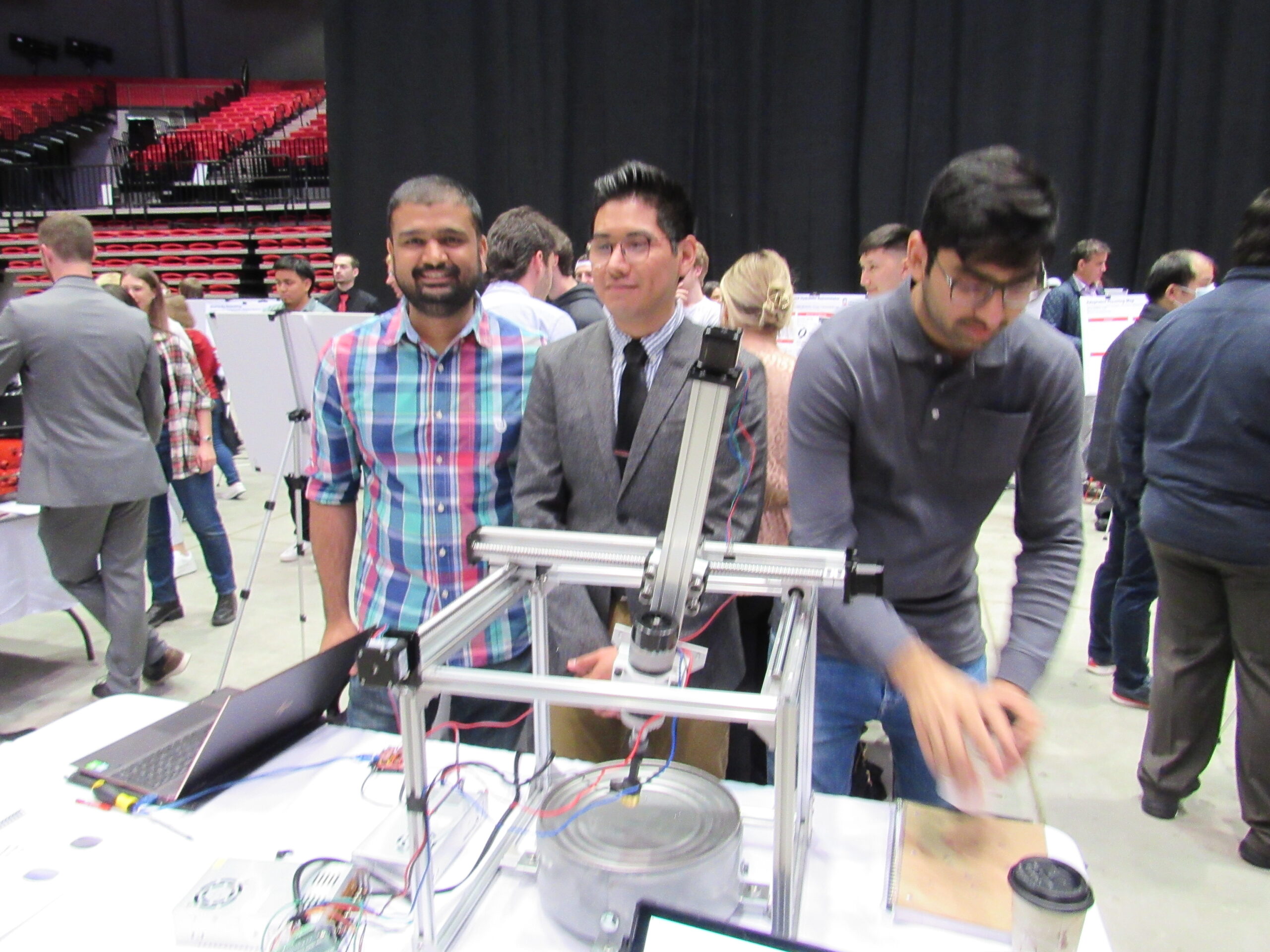 First place in the interdisciplinary teams was Team 46, whose project was titled “Feedback, Control, and Photo Elasticity Measurement System for Multiaxial Loading Devices.” Team and the members included Tony Bucaro, Ben Lynam, and Pablo Pozo.